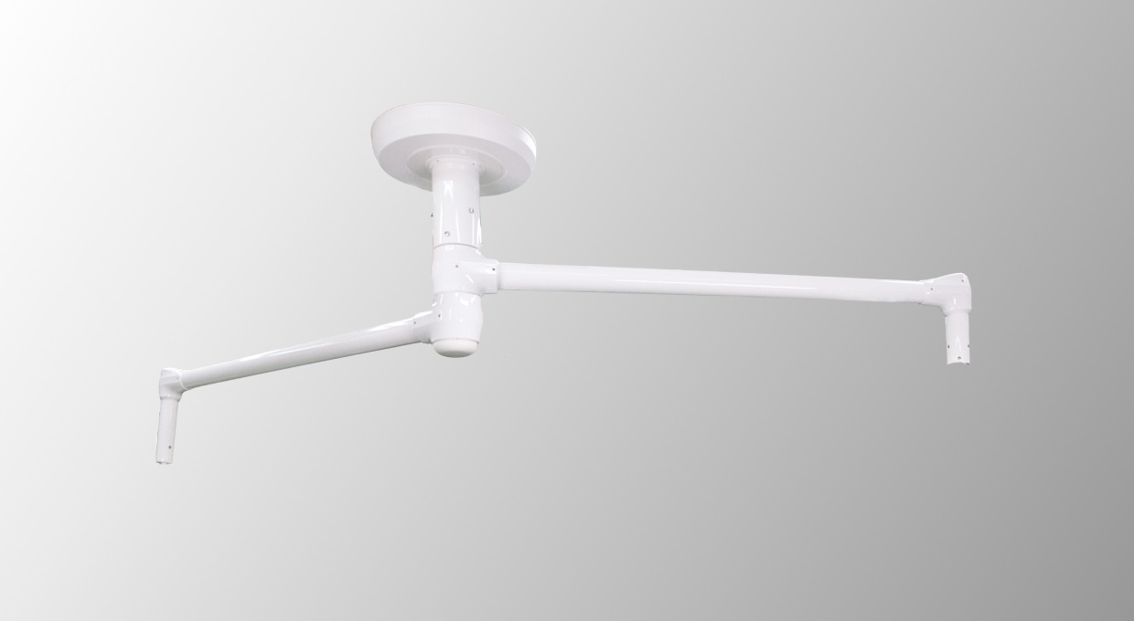 長いアーム長が求められるハイブリッド手術室に対応。処置の動線を邪魔すること無く照明等が配置できます。